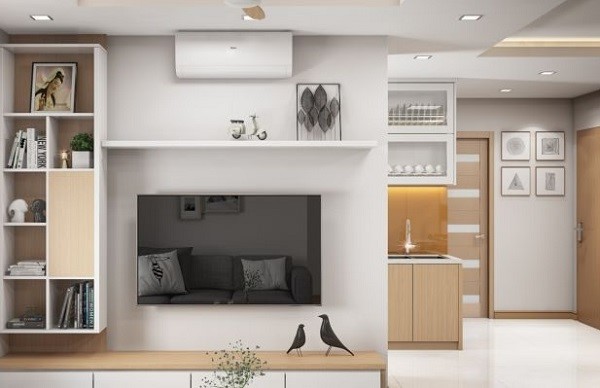 Với cách đặt kệ tivi treo tường chủ yếu dành cho không gian phòng có diện tích nhỏ và hẹp.
